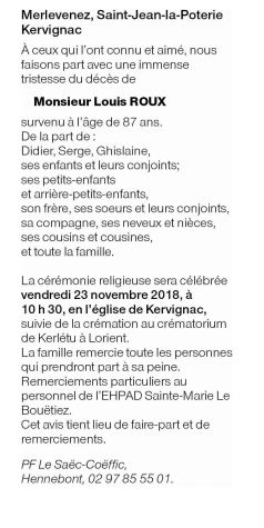 Décédé à Hennebont (56700, France) le mercredi 21 novembre 2018 à l'âge de 87 ans