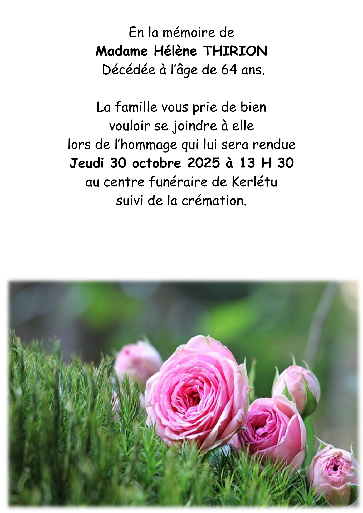 Décédée à Ploemeur (56270, France) le samedi 25 octobre 2025 à l'âge de 64 ans