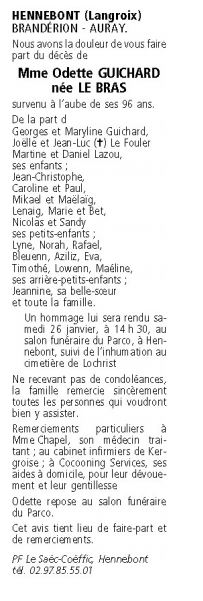 Née à Guénin (56150, France) le jeudi 22 mars 1923