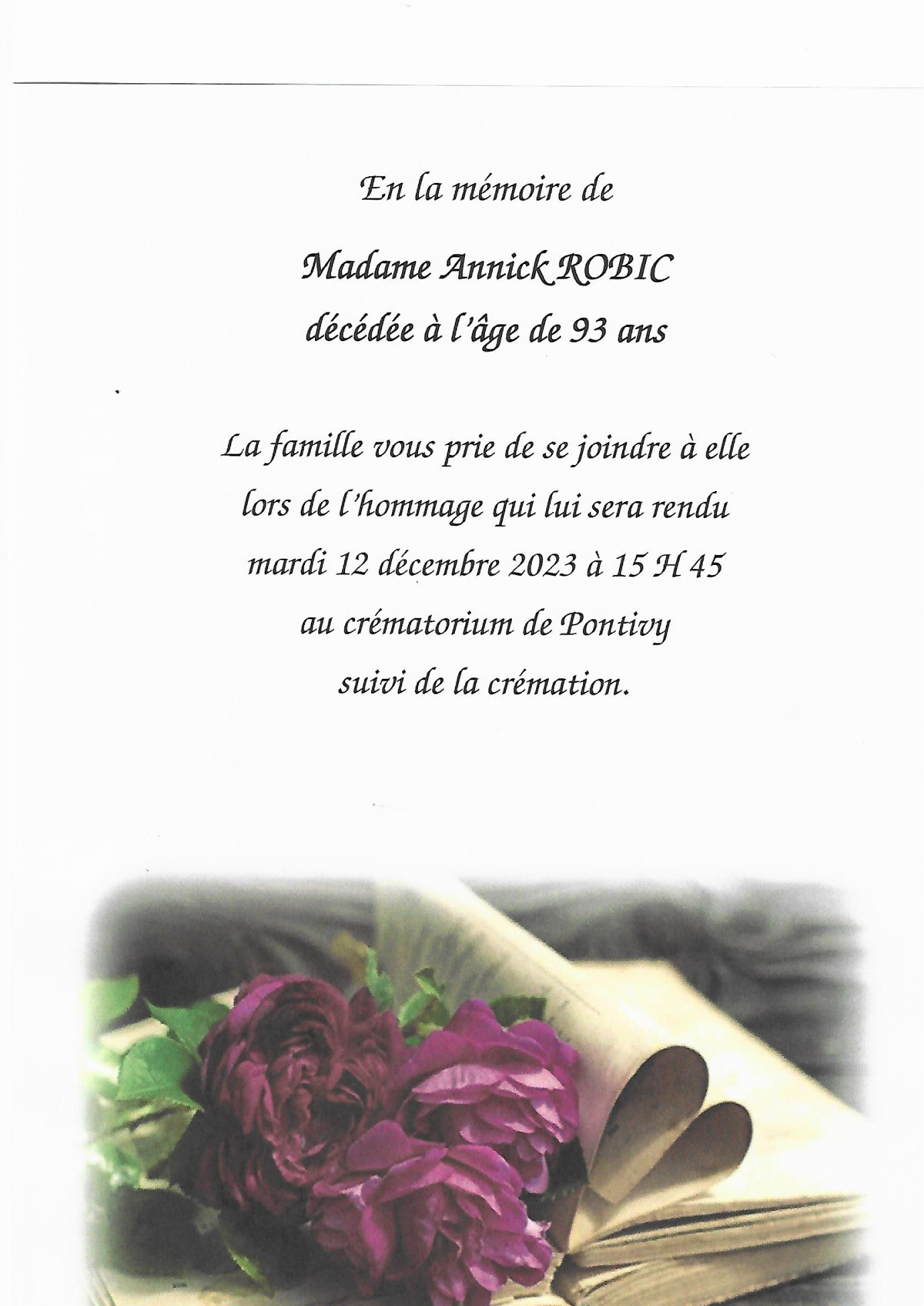 Décédée à Hennebont (56700, France) le jeudi 7 décembre 2023 à l'âge de 93 ans