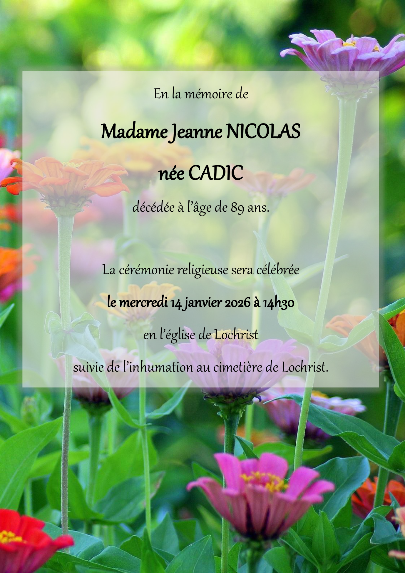 Madame Jeanne NICOLAS née CADIC