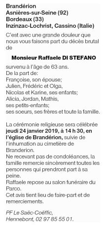Décédé à Lorient (56100, France) le dimanche 20 janvier 2019 à l'âge de 63 ans