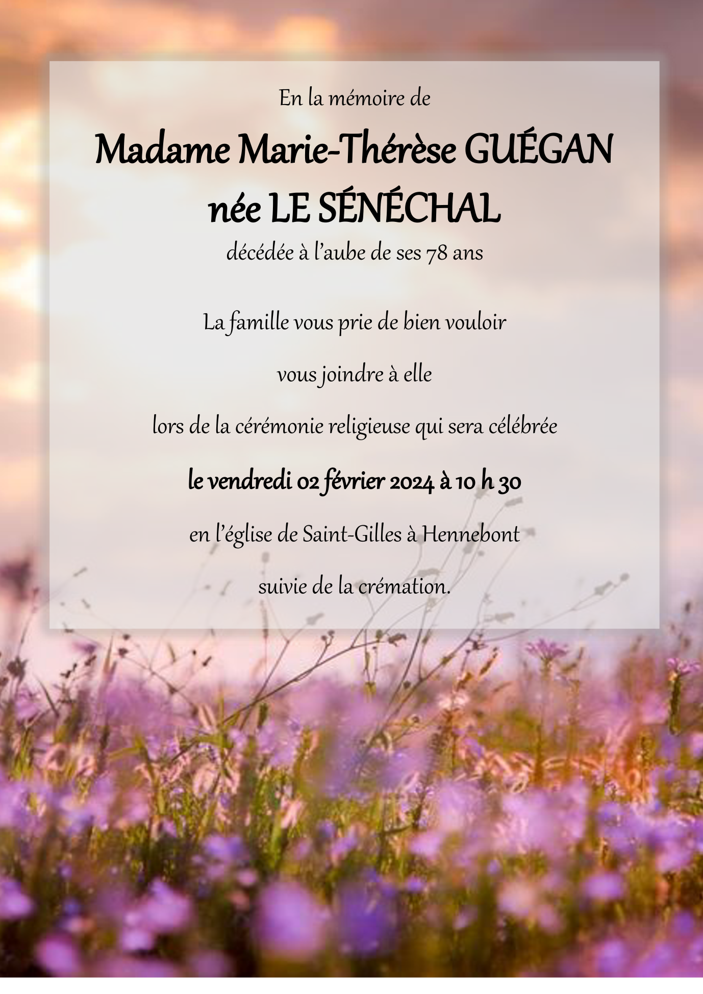 Madame Marie-Thérèse GUÉGAN née LE SÉNÉCHAL